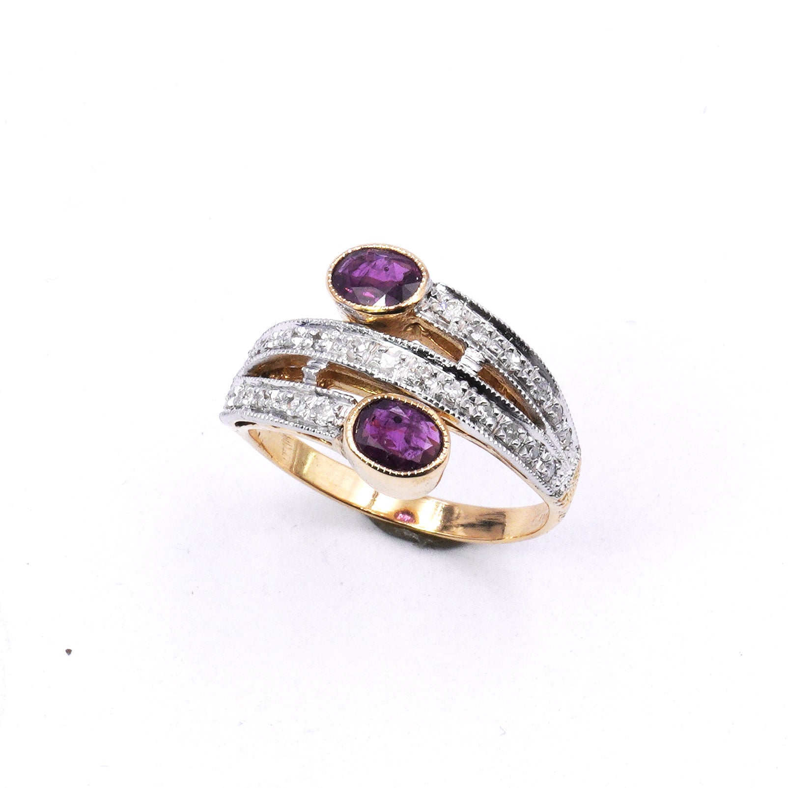 Anello Oro rosa e Argento con Diamanti e Rubini Naturali